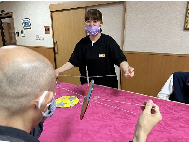 最初は「これ何?」と不思議そうにされていた利用者様も、コマが綺麗に回ると