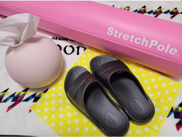 こちらは嵐が愛用しているストレッチポール、櫻井翔くん愛用のサンダル、めめ(Snow Manの目黒蓮)愛用のティッシュケースです。ついつい購入してしまいました😍次に狙っているのは相葉ちゃん愛用のリカバリーウェアです❤ お揃いと思うだけで、幸せな気持ちになっちゃいます😍