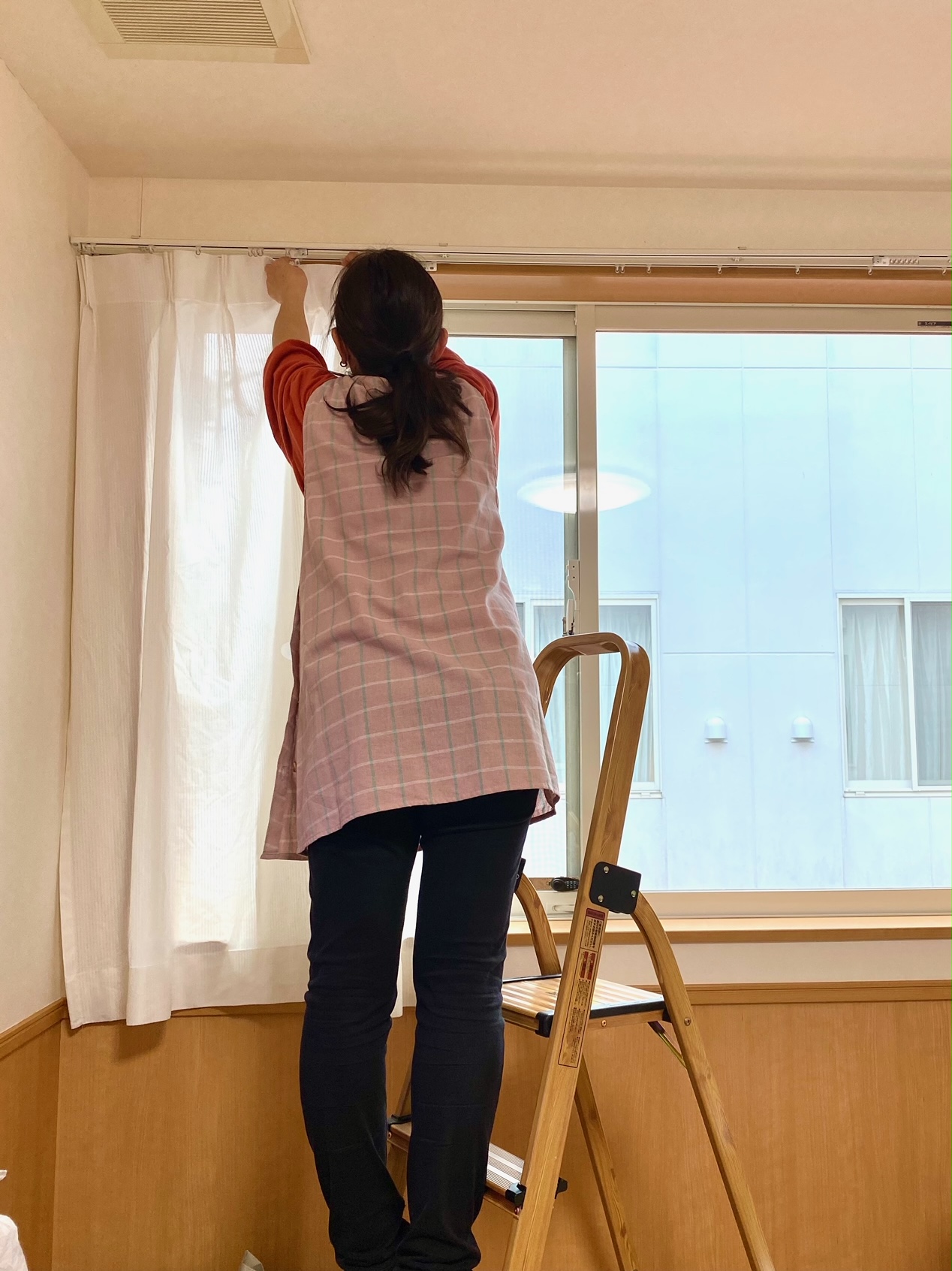 年末恒例の居室のカーテンの洗濯と掃除です。
