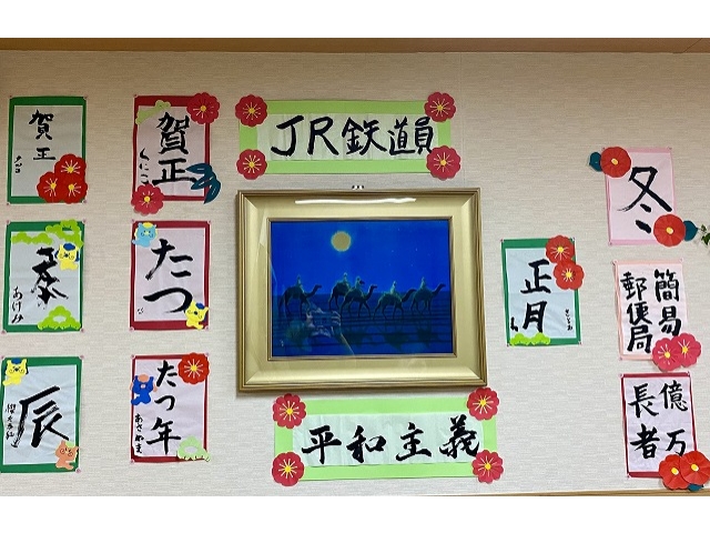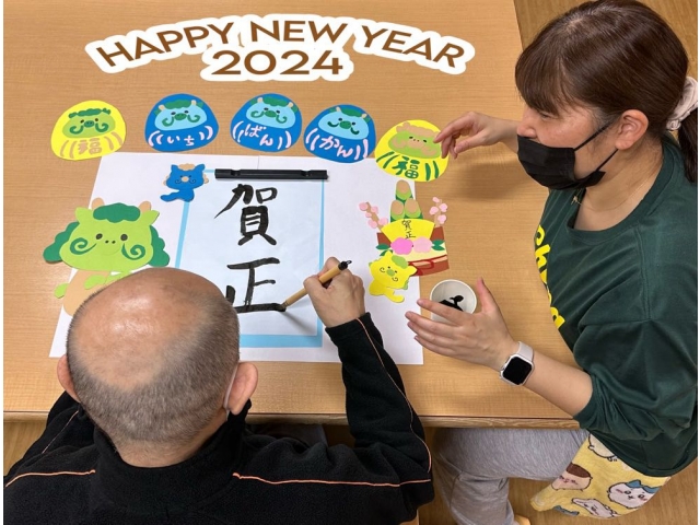 年始には利用者様と書き初めをしたり、フロアの飾り付けをしました(^^)