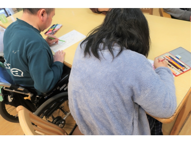 お花、食べ物、風景などいろんな種類があり、毎日いろんな塗り絵が出来上がっています。