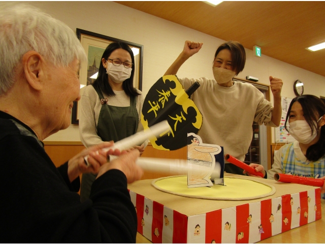 3月に入り大相撲春場所が開催されていますね!この時期になると、利用者様とテレビ観戦することが多く、とても賑わっています🎉相撲が大好きな利用者様の笑顔がもっと見たい!という想いで、一から全て手作りをしたトントン相撲!「面白い!次は私がやりたい!」とたくさんの利用者様が楽しまれました!