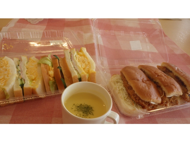 卵たっぷりのミックスサンドやみそカツ、エビカツ、好きなメニューを皆さんと選びました。笑顔でパクパク「美味しいね~」と喜んでいただけました(#^.^#)