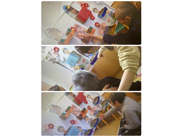 イチゴが旬の時期になりました。施設では、手作りのイチゴ狩りゲームで楽しんでいただきました!(^^)!