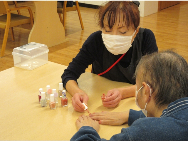 暖かくなったら、どこへお出かけしよう?広い空が見える所?きれいなお花が咲いている所?楽しい事を思い描きながら、桜の色に合わせた、パステルピンクのネイルをして春を感じていただきました。