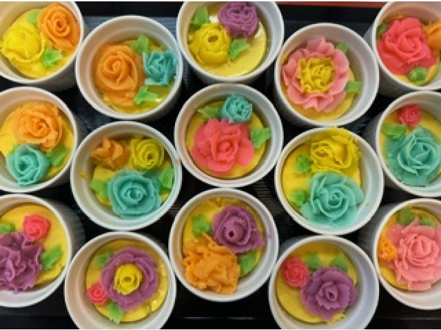 かぼちゃムースに色彩豊かな餡でデコレーションする「餡フラワー」✨
