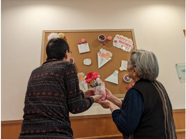 レクリエーションでは、母の日にちなんでカーネーションの花束を女性利用者様にプレゼントしました!!スタッフ一同心を込めて作りました♪利用者様にも大変喜んでいただけました(*^^*)