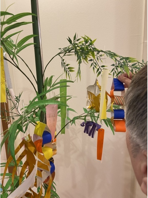 7月と言えば七夕ですね。短冊に願い事を書いてもらいました。「美味しいマグロを食べたい」「旅行に出かけたい」等、願いは様々です。みんな願い事が叶うといいですね。