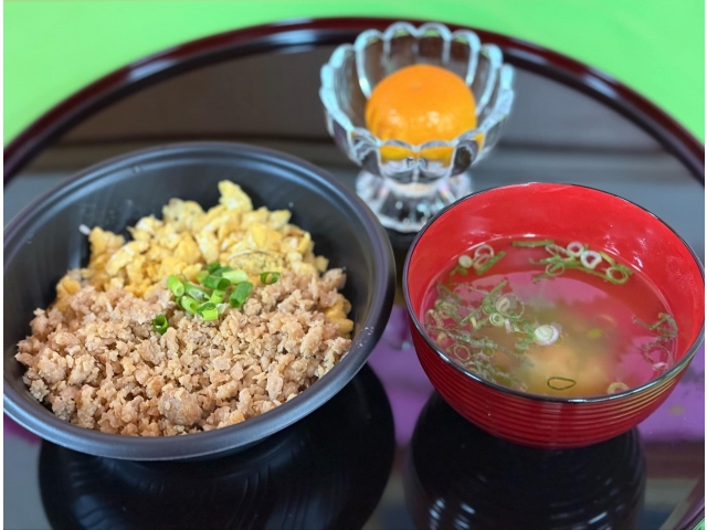 しっかりと味のしみたそぼろと玉子がご飯によく合い「美味しい~」と喜んでいただけました。