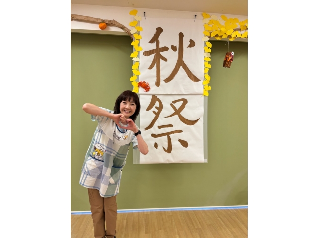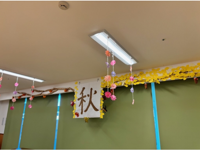 飾りのイチョウが色づき、柿が実り、利用者様は「秋だね~」と季節を感じております(*'▽')