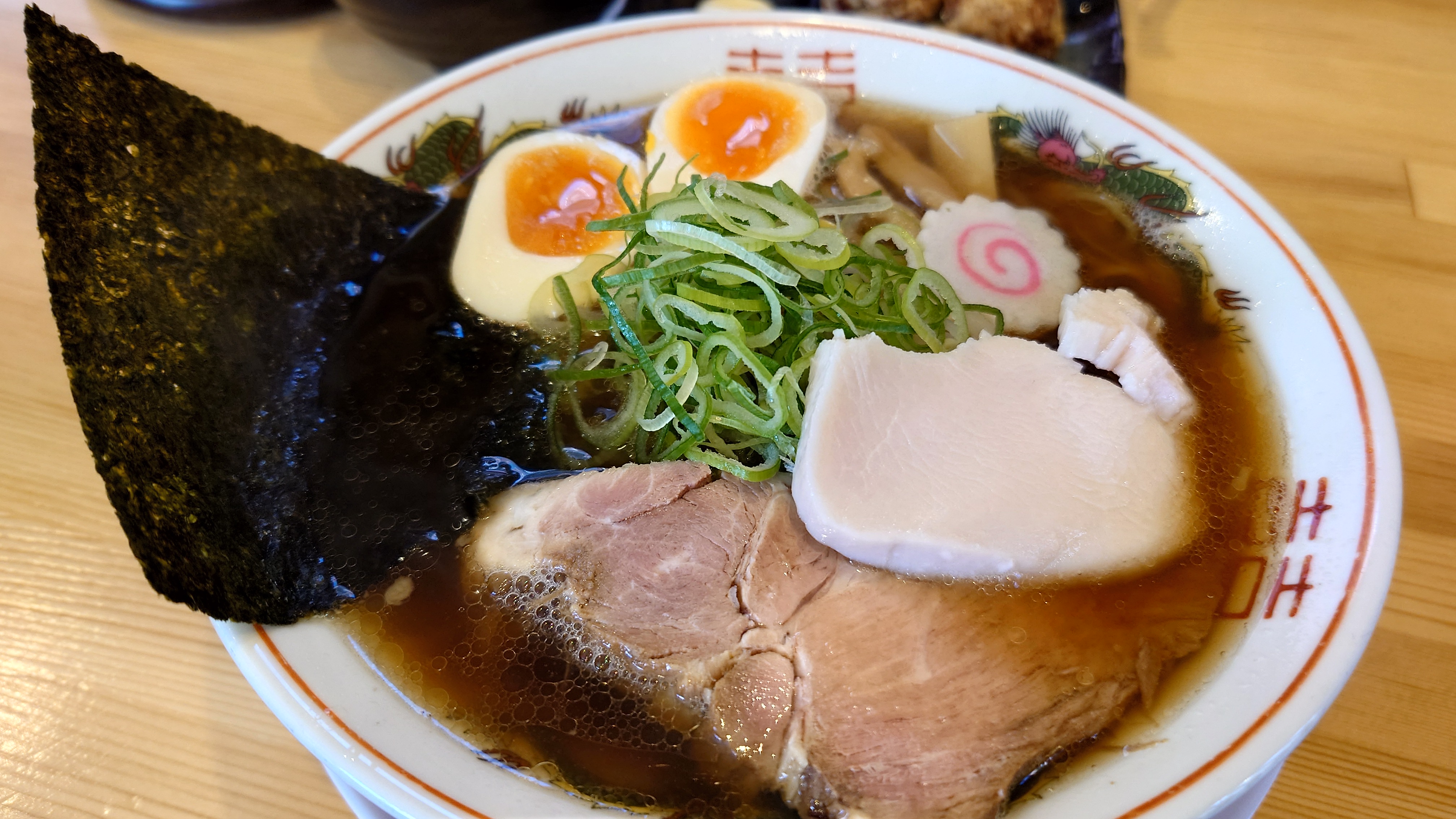 キャンプ場の近くにある「らーめん いろは」さんで昼食。観光協会でおススメされていた「特性醤油らーめん」を食べましたが、やわらかい鳥ハムと大きめのチャーシューが美味しく、満足のいくボリュームでした。セットの小ライスや半チャーハンは普通に一人前くらいの量があるのでご注意を。