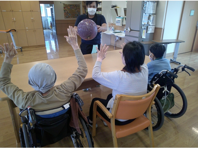 皆さんで『風船バレー』のレクリエーション(∩´∀`)∩