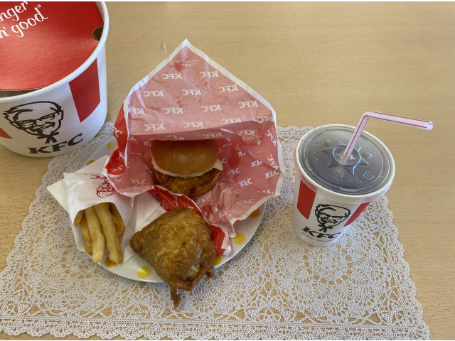今日は利用者様の誕生日!「おめでとう!」「これからも元気でいてね!」と、お祝いの声が聞こえてきます。誕生日メニューとしてケンタッキー・フライド・チキンをご用意しました。大好きなメニューの前に思わずニッコリ。「ほんとに幸せな一日だわ」とのつぶやきに、スタッフたちも嬉しくなりました。