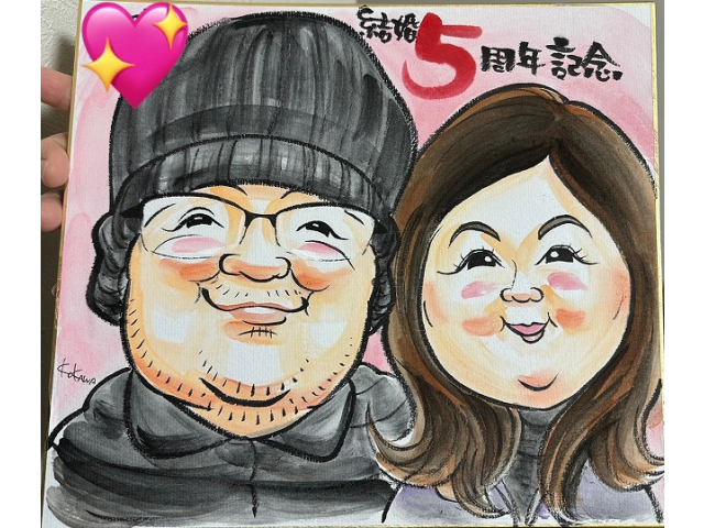 似顔絵師の粉川さんという方に似顔絵を描いていただきました。