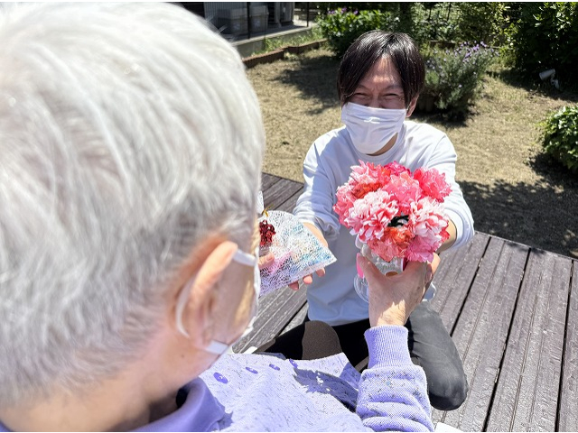 女性の利用者様に、母の日の花束をプレゼントしました!