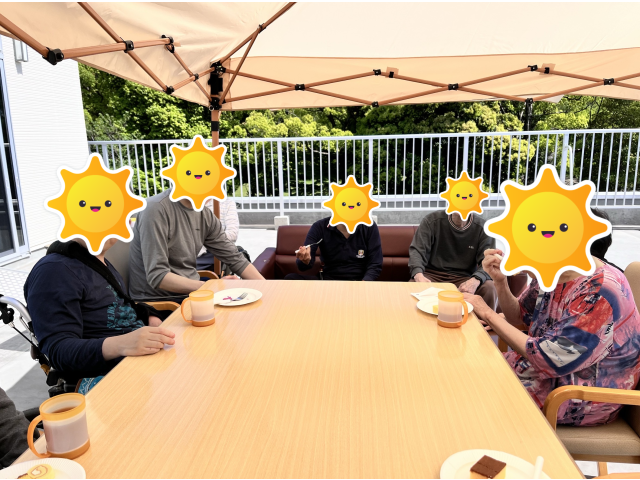 爽やかに晴れ渡ったとある日の午後🌞、テラスにタープを張って🎪おやつを提供しました🍰