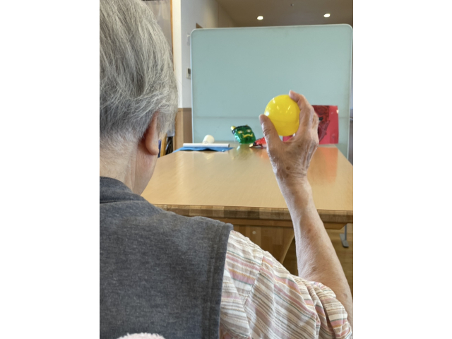 利用者様と一緒に作った鬼をテーブルに並べて、的あてゲームを行いました。「いい運動になるわね!」と話しながら真剣に取り組んでいただけました。室内でも楽しく過ごしてもらえるような企画を頑張って考えていきたいと思います(^^♪