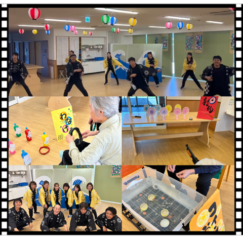 夏祭りでは輪投げや射的などの懐かしい遊びや、スタッフによるソーラン節の演舞を行いました♪