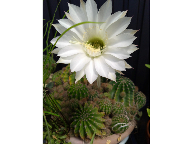 自宅にあるサボテンから真っ白な花が咲いていたので思わず写真を撮りました!