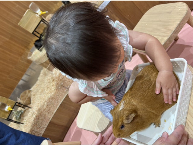 子どもにとって動物たちとのふれあいは大事なことと思い、小動物にさわることのできるMoff animal cafeへ行きました🐤