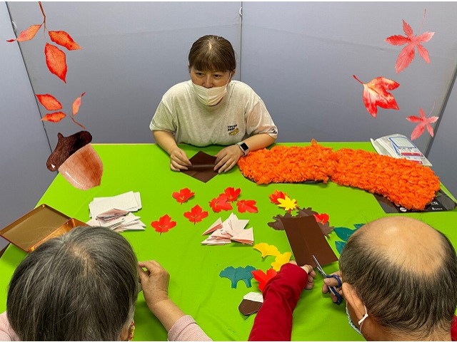 秋らしくなってきたので利用者様に季節を感じていただこうと、一緒に秋の飾りを作りました!工作をしながら利用者様とお喋りをするのは楽しくて、あっという間に時間が過ぎてしまいます。完成が待ち遠しいです!