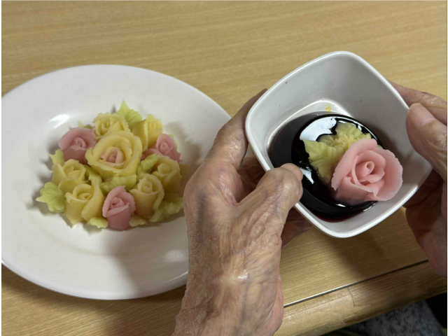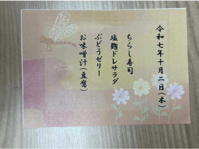 いつも美味しいお食事でお世話になっている株式会社ナリコマエンタープライズさんがちらし寿司を作りに来てくださいました!色とりどりの具材が散りばめられたちらし寿司と、こしあんでできたお花を見て「すごく綺麗!」「食べたいけどなんだかもったいないね~!」と大盛り上がりでした。ナリコマの皆様、楽しいひとときをありがとうございました!