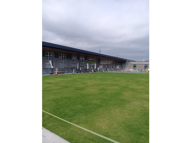 建物の前には綺麗な芝生が広がっており、開放感があります。