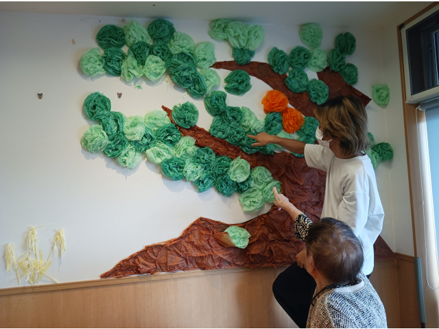 「この色、きれいね😊」「なんだか施設全体がポカポカするわ☀️」と、笑顔が見られました。