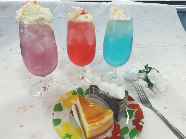 今月のお誕生日会は『チーズケーキ』『ガトーショコラ』『クリームソーダ』を提供しました✨「カラフルで綺麗だね」と、笑顔で召し上がる利用者様に、スタッフも幸せな気持ちになりました!