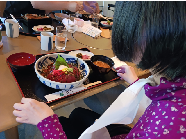 和風庭園を眺めながらのランチは格別!「夢みたい!」と利用者様の笑顔は満開でした😊 景色と美食で心ゆくまでリフレッシュしていただけました♪