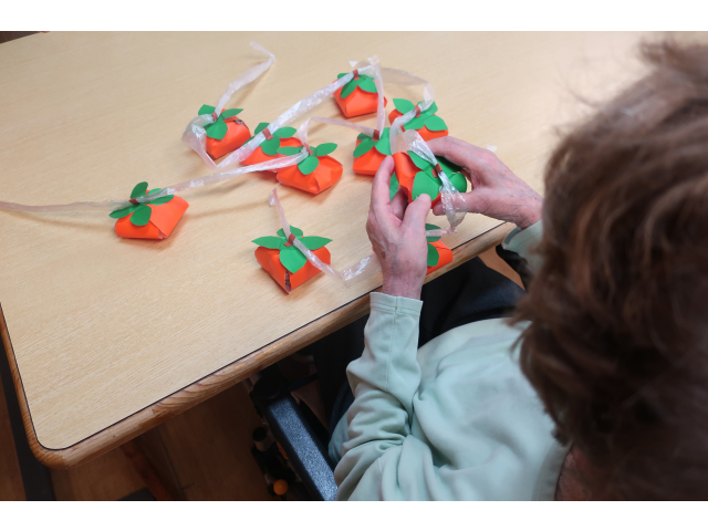 利用者様は「まだまだ頑張れるよ」と、数多くの柿の飾りを作ってくださいました。