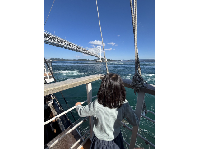 二日目は渦潮を見に、船に乗って鳴門大橋の下まで行ってきました。