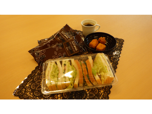 今月の食事レクリエーションは、コメダ珈琲のハムサンドとコメチキをご用意しました!