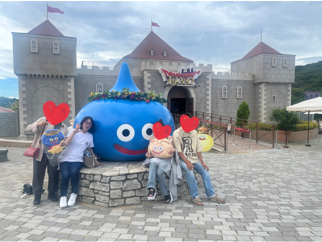 私の大好きなドラゴンクエストのアトラクションへ!!ゲームの中の世界みたいな街並みで、楽しく冒険できました(*'▽')