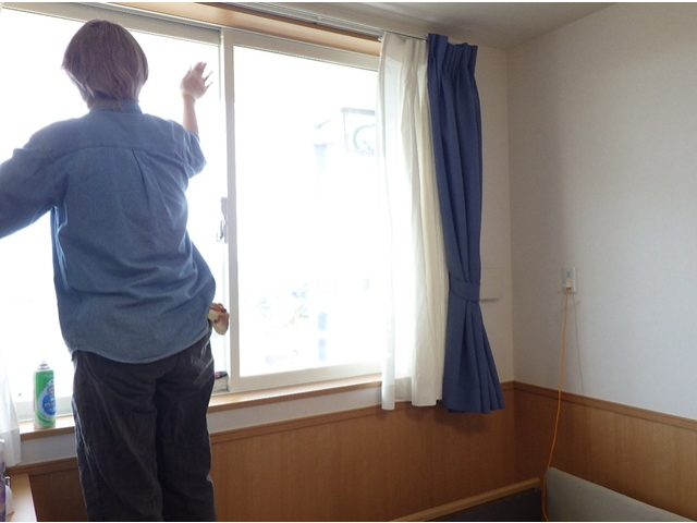 年末に向けて施設内の掃除を進めています。今日は利用者様の居室の窓を綺麗にしました。