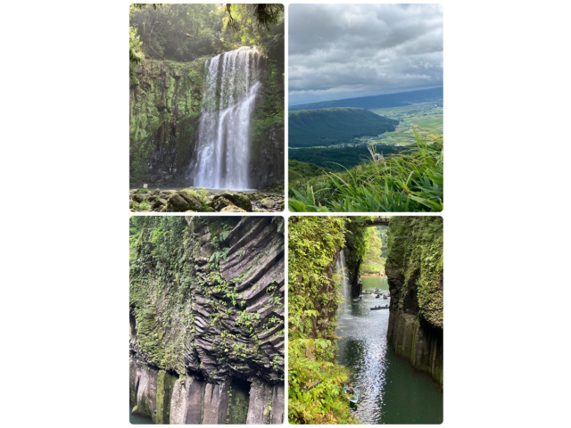 福岡を出発し大分県の桜滝へ。マイナスイオンに癒された後は、阿蘇大観峰で阿蘇五岳からくじゅう連山までの雄大な景色を一望しました。