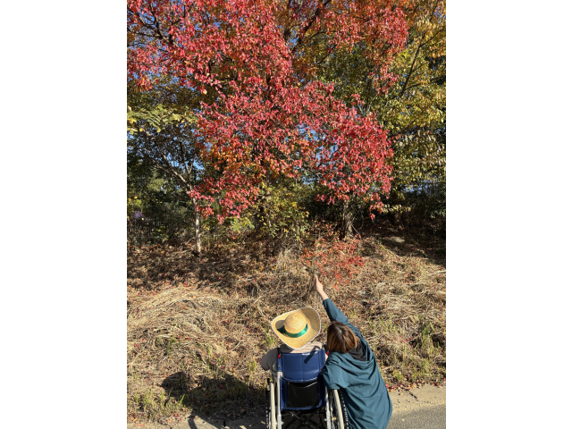 施設周辺の木の葉が色づいてきたので、利用者様と一緒に散歩がてら紅葉を見に行きました🍁