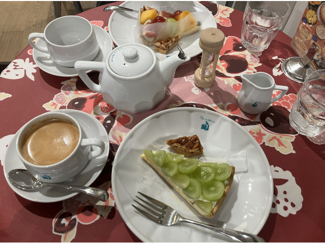 どれも美味しそうで迷いましたが、シャインマスカットのタルトを食べました。