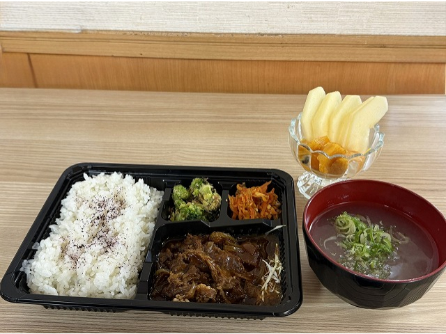 CAFE Hyggeの牛カルビ弁当をご用意しました。お弁当が目の前にくると「わあ~お肉がたくさん入っているね!食べられるかな?」と話されていましたが、食べ始めると「こんなお肉初めて食べたわ」「美味しいね♪また食べたい」と大好評でした。