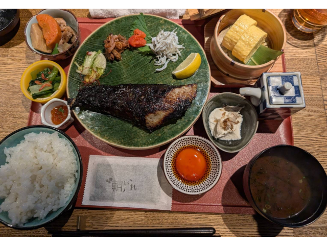 朝ノしぐれというお店で朝食を食べてきました。土鍋で炊いたご飯や炭火でじっくり焼き上げた銀鱈が絶品でした!朝から美味しいご飯を食べると心も体も元気になります☆