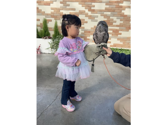 家族で掛川花鳥園に行ってきました。娘は初めて腕にフクロウを乗せることに挑戦しました。顔はひきつっていましたが、嬉しかったみたいで「また行きたい」と言っていました。