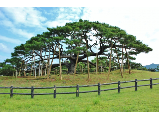 樹齢数百年を誇る巨大な松。島のシンボル的存在で、自然の力強さを感じられるスポットです。