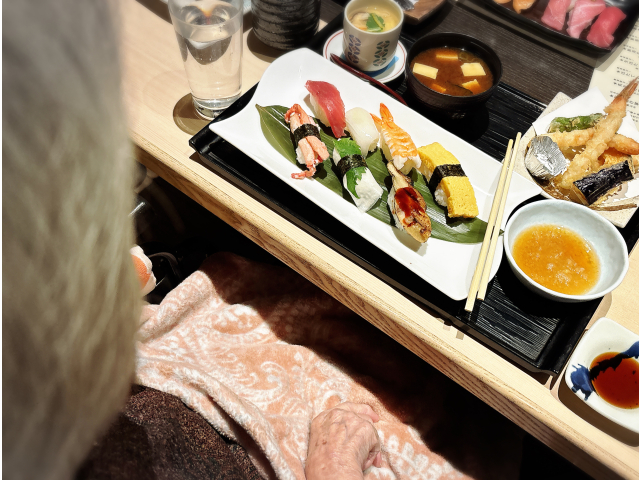 外出レクで利用者様から人気の高いにぎり長次郎に行ってきました。美味しいネタの数々に大満足の様子でした😊