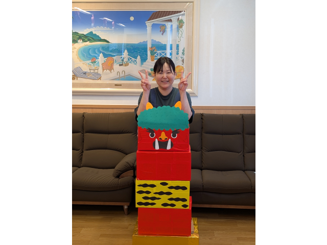 BLUE HOUSE 1Fの桐越です。入社して6年目になりました。2月の節分イベントで利用者様と鬼を作製しました。様々なイベントを通して、季節の移り変わりを一緒に感じています。毎日寒いので春が待ち遠しいです。