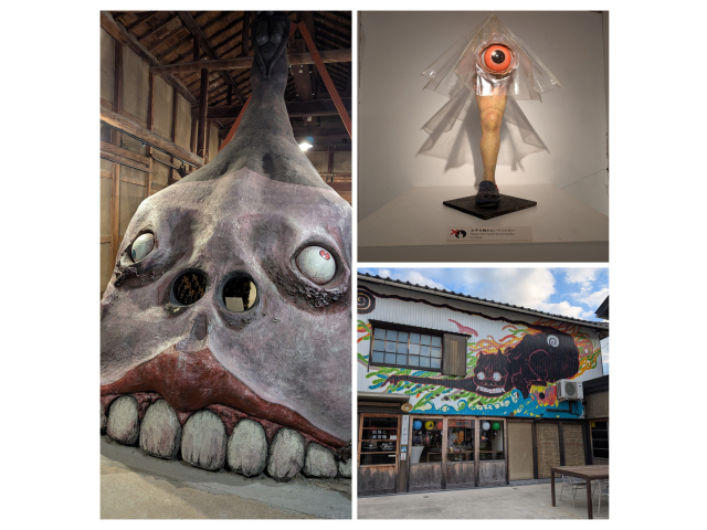 小豆島の妖怪美術館に行ってきました。古い建物を再利用した館が4か所に点在しており、音声ガイドとマップを頼りに巡っていきます。左の写真は高さ4mもあるドデカ妖怪です。近くで見ると今にも動き出しそうな迫力があって見ごたえがありました。