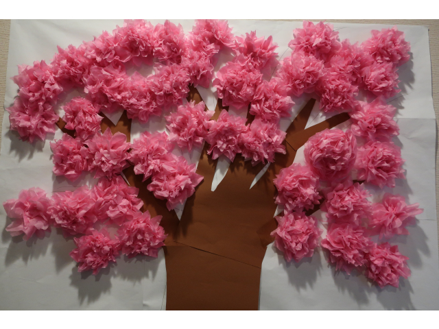 利用者様と桜の木を作りました。作りながら利用者様に春の思い出を聞かせていただきました。